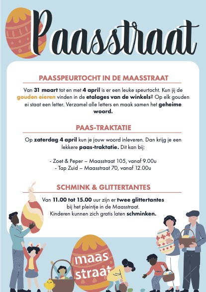 Samen met alle ondernemers van de Maasstraat vragen we aandacht voor buurtgenoten voor wie een gevulde paastafel niet vanzelfsprekend is.